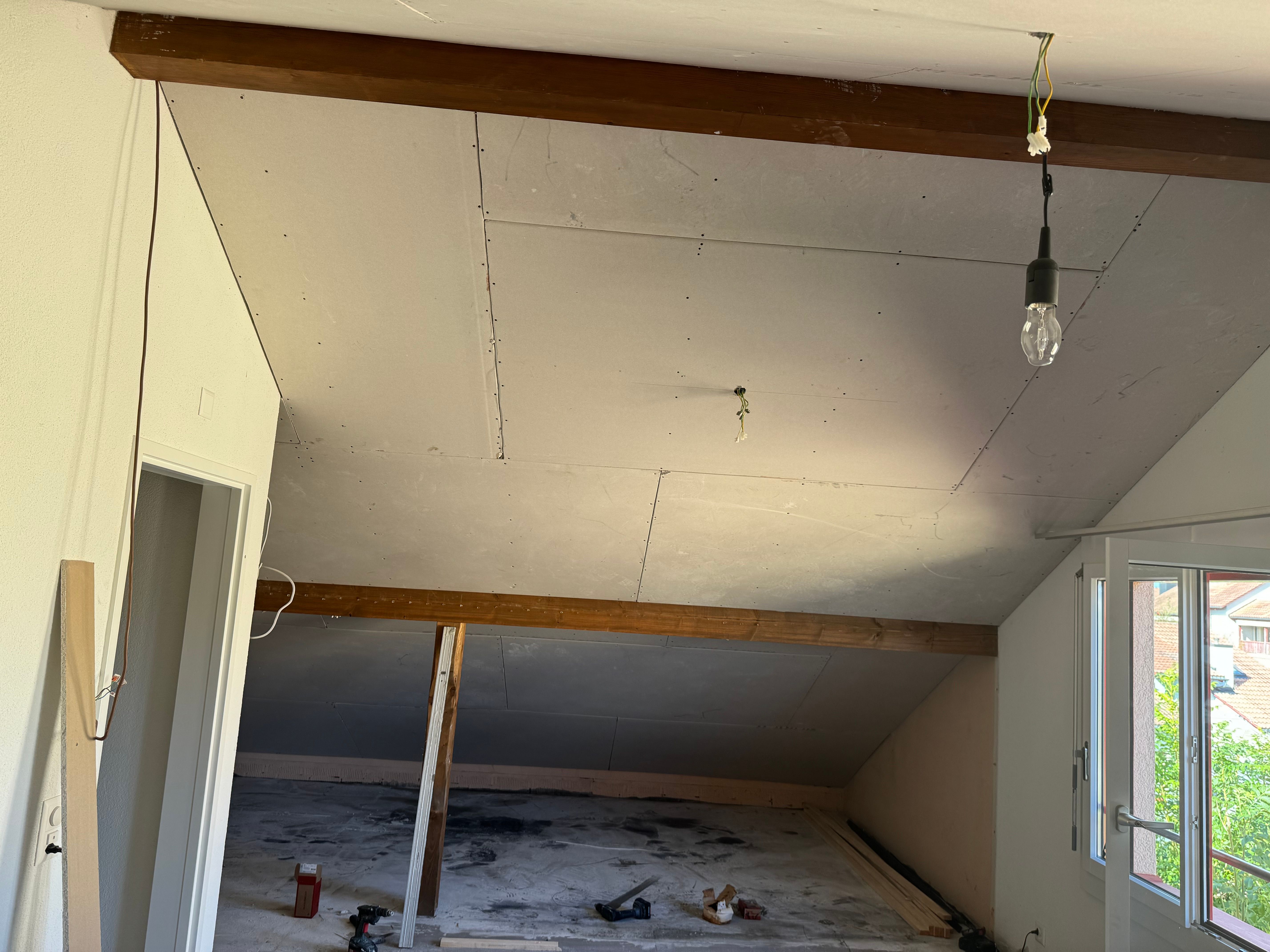 OrdineFreitragende Decke aus CW-Profilen, Steinwolldämmung, 2x12.5 Beplankung und verspachtelten Fugen